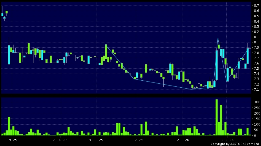 Disclaimer:The information, financial market data, quotes, charts, statistics and / or various technical analysis indicators are automatically generated based on the analyses and interpretations of publicly available information and should be used as references only at your own discretion. Such automatically generated content does not reflect the views or opinions of AASTOCKS.com Limited nor does AASTOCKS.com Limited make any guarantees to their accuracy, completeness, timeliness or correctness. You are advised to consult independent professional advice to verify pricing information or to obtain more detailed market information. Any uses of information or trades executed following the said automatically generated content are taken at your own risk for your own account.