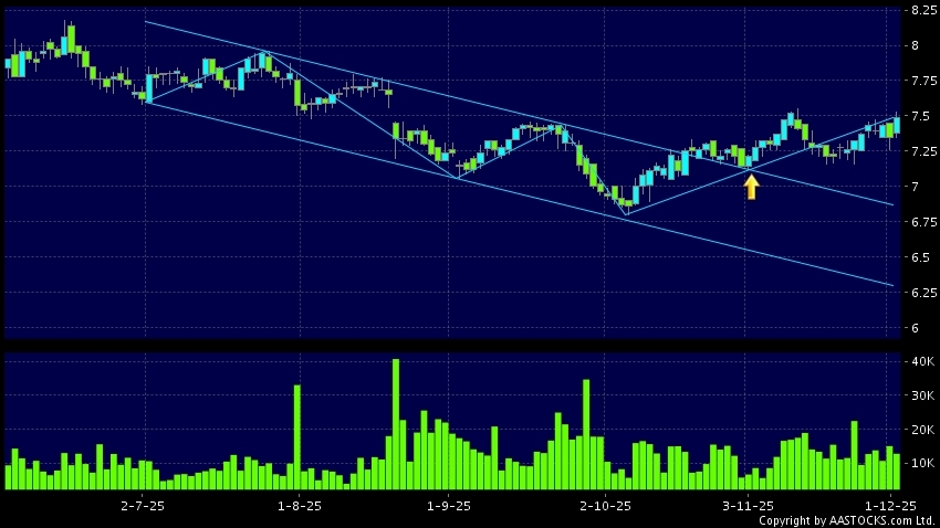 KUNLUN ENERGY(00135.HK) appears an upside range breakout. Last printed at 7.490; rose 1.905%; on volume of 12.78M shares and turnover of $95.23MRecent PerformanceIn 3 days: +1.353%...