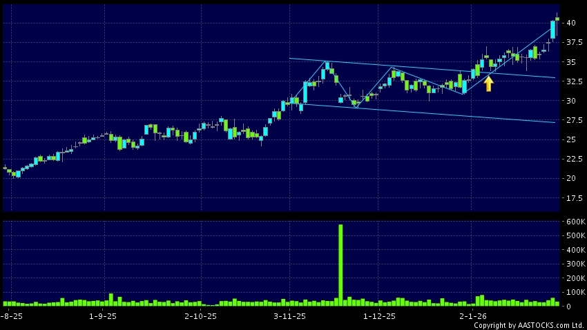 CHINAHONGQIAO(01378.HK) appears an upside range breakout. Last printed at 40.140; fell 0.199%; on volume of 33.85M shares and turnover of $1.34BRecent PerformanceIn 3 days: +9.792%...