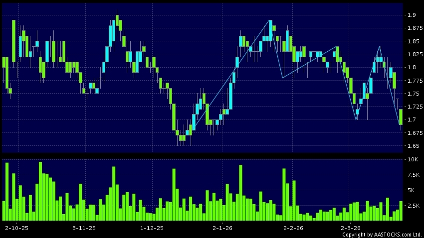 Disclaimer:The information, financial market data, quotes, charts, statistics and / or various technical analysis indicators are automatically generated based on the analyses and interpretations of publicly available information and should be used as references only at your own discretion. Such automatically generated content does not reflect the views or opinions of AASTOCKS.com Limited nor does AASTOCKS.com Limited make any guarantees to their accuracy, completeness, timeliness or correctness. You are advised to consult independent professional advice to verify pricing information or to obtain more detailed market information. Any uses of information or trades executed following the said automatically generated content are taken at your own risk for your own account.