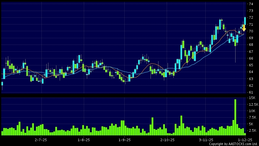 Disclaimer:The information, financial market data, quotes, charts, statistics and / or various technical analysis indicators are automatically generated based on the analyses and interpretations of publicly available information and should be used as references only at your own discretion. Such automatically generated content does not reflect the views or opinions of AASTOCKS.com Limited nor does AASTOCKS.com Limited make any guarantees to their accuracy, completeness, timeliness or correctness. You are advised to consult independent professional advice to verify pricing information or to obtain more detailed market information. Any uses of information or trades executed following the said automatically generated content are taken at your own risk for your own account.