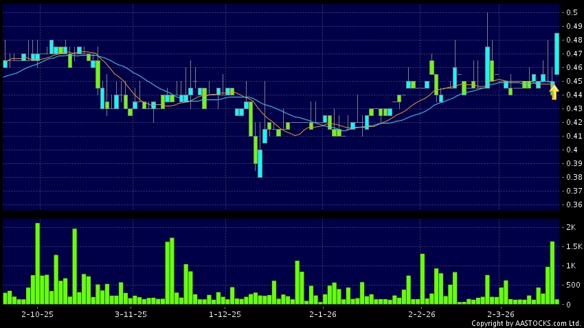 Disclaimer:The information, financial market data, quotes, charts, statistics and / or various technical analysis indicators are automatically generated based on the analyses and interpretations of publicly available information and should be used as references only at your own discretion. Such automatically generated content does not reflect the views or opinions of AASTOCKS.com Limited nor does AASTOCKS.com Limited make any guarantees to their accuracy, completeness, timeliness or correctness. You are advised to consult independent professional advice to verify pricing information or to obtain more detailed market information. Any uses of information or trades executed following the said automatically generated content are taken at your own risk for your own account.