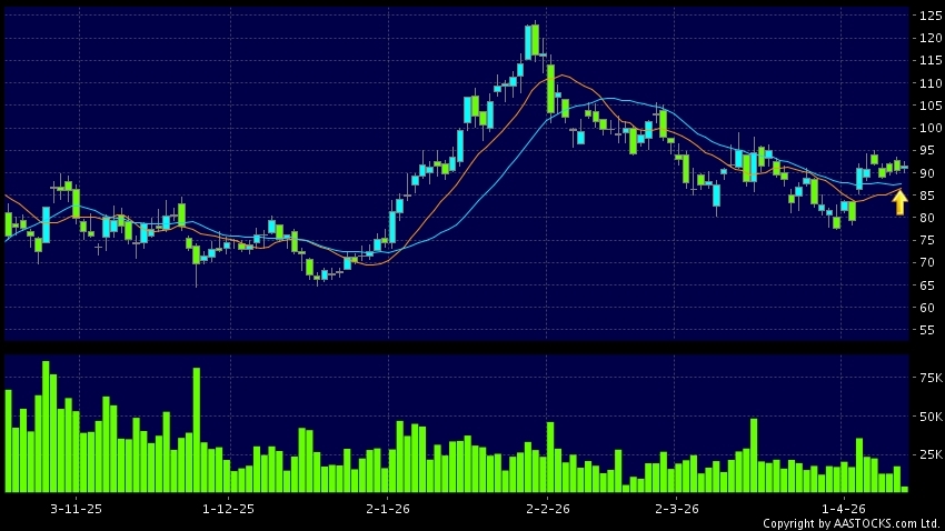 黄金交叉是一个利好讯号,指股价的短期移动平均线升穿长期移动平均线,例如50天线升穿250天线,在图表上构成交叉的形状。股价通常会上升形成一个上升趋势,技术走势向好。(港股报价延迟最少十五分钟。沽空资料截至 2026-04-16 16:25。)