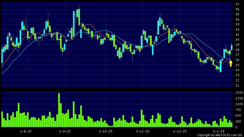 黄金交叉是一个利好讯号,指股价的短期移动平均线升穿长期移动平均线,例如50天线升穿250天线,在图表上构成交叉的形状。股价通常会上升形成一个上升趋势,技术走势向好。(港股报价延迟最少十五分钟。沽空资料截至 2026-01-13 16:25。)