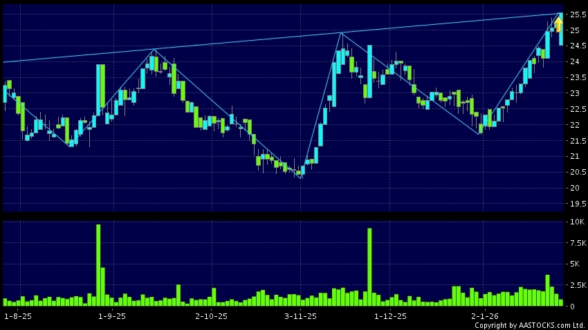 頭肩底是典型的利好訊號,當股價升穿阻力線時,升勢確認股價將持續上升,技術走勢向好。(港股報價延遲最少十五分鐘。沽空資料截至 2026-01-27 16:25。)