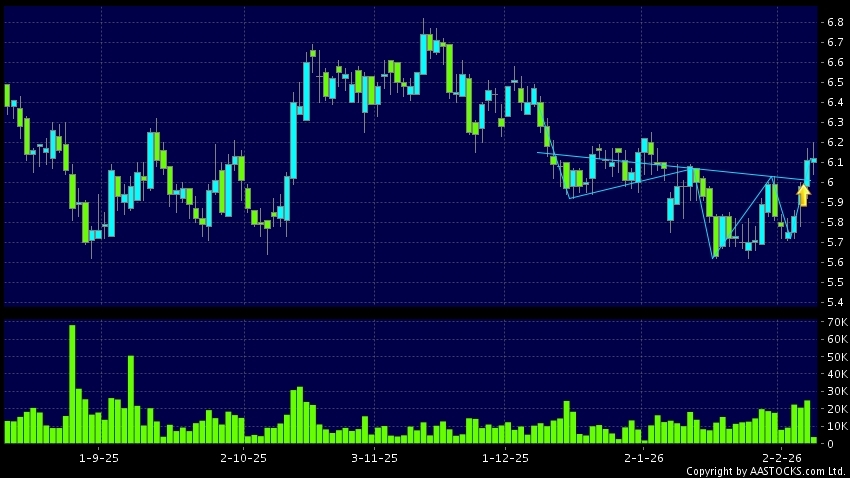 頭肩底是典型的利好訊號,當股價升穿阻力線時,升勢確認股價將持續上升,技術走勢向好。(港股報價延遲最少十五分鐘。沽空資料截至 2026-02-09 16:25。)