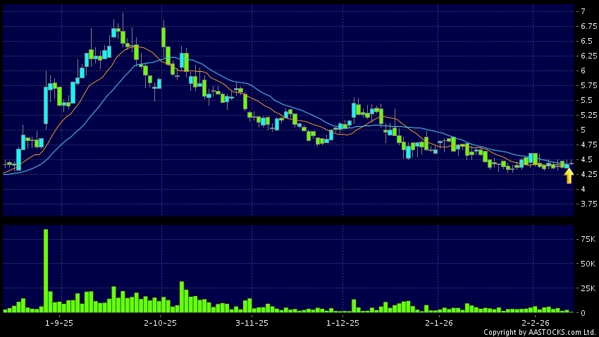 免責聲明:以上金融市場數據、報價、圖表 及/或各種技術分析指標乃根據公開資料分析和演釋自動生成的,僅作參考使用。此類自動生成的內容並不代表AASTOCKS.com Limited的立場。AASTOCKS.com Limited並不保證其準確性、完整性、實時性或者正確性。閣下應諮詢獨立專業意見,以核實定價資料或獲取更詳細的市場信息及須為所有跟隨此類自動生成的內容執行的交易或使用該內容負責。