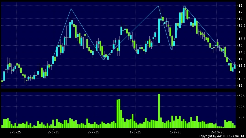 三重頂指股票上升至三個相近的高位後,開始下跌,然後形成下降趨勢,屬利淡訊號。三個高點成為一個阻力位,難以升破。(港股報價延遲最少十五分鐘。沽空資料截至 2025-10-16 16:25。)