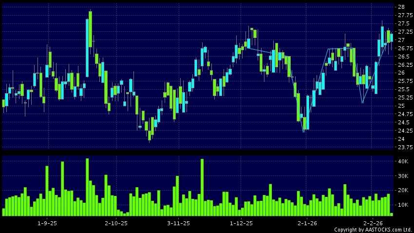 免責聲明:以上金融市場數據、報價、圖表 及/或各種技術分析指標乃根據公開資料分析和演釋自動生成的,僅作參考使用。此類自動生成的內容並不代表AASTOCKS.com Limited的立場。AASTOCKS.com Limited並不保證其準確性、完整性、實時性或者正確性。閣下應諮詢獨立專業意見,以核實定價資料或獲取更詳細的市場信息及須為所有跟隨此類自動生成的內容執行的交易或使用該內容負責。
