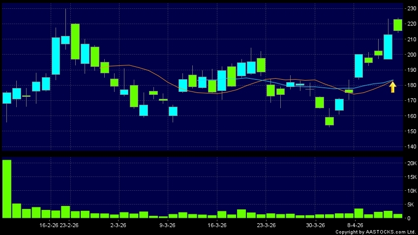 瀾起科技(06809.HK) 0.000 (0.000%) 10天移動平均線升穿20天移動平均線,出現黃金交叉。現價報215.600,上升1.221%,成交量1.54百萬股,成交額3.37億。