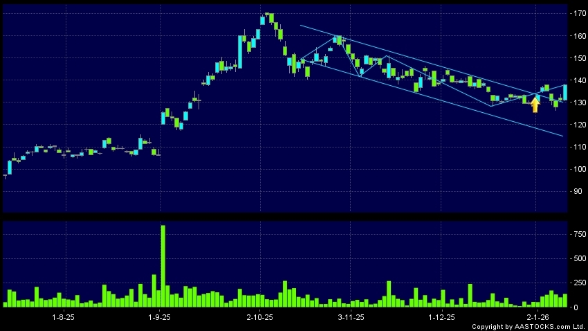 區域突破指股價在過去的一段時間只在一個範圍在內活動,然後股價上升作出突破,升穿區域的頂部,技術走勢向好。(港股報價延遲最少十五分鐘。沽空資料截至 2026-01-12 16:25。)