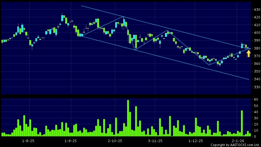 區域突破指股價在過去的一段時間只在一個範圍在內活動,然後股價上升作出突破,升穿區域的頂部,技術走勢向好。(港股報價延遲最少十五分鐘。沽空資料截至 2026-01-12 16:25。)